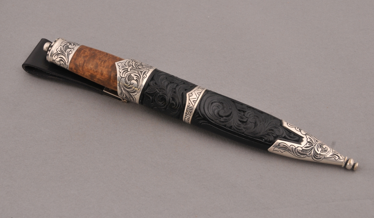 Sylvholka staskniv. Skaftet er behandla med vassbeis, deretter giftfri matolje og polera opp med bivoks. Alt er handgjort, men grunnlinjer i sylvgravering gjort med luftmeisel.Hei! jeg kikket litt på nette etter slirer jeg syntes var fine, og jeg blir så fasinert av denne sliren som dere ser ved siden av, selvom jeg vet at jeg ikke har tid til å lage de. Syntes de bare er så fiiine!!(:(: